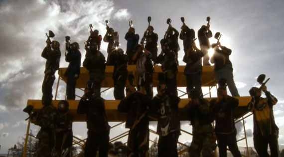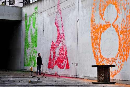 A résztvevők paintball puskával, sok-sok célzott lövéssel kell megfesteniük egy motívumot vagy cég logót. Egyszerre kb. 20 fő tud lőni, fejenként 100 db különböző színű festékgolyót az előre kialakított mesterséges óriás festőfalra. Cégünk kialakítja a 2-3 soros lőállást és az óriás festőállványt, valamint biztosítja a paintball fegyvereket, különböző színű festékgolyót, és a speciális festővásznat. Igény esetén a megrendelő kis csoportokban meg is tervezheti és fel is viheti a motívum körvonalait, majd közösen fel is rögzíthetik a falra azt a csapatépítés keretein belül. Nagyon kreatív feladat, mely nagyfokú kommunikációt és szervezést igényel.