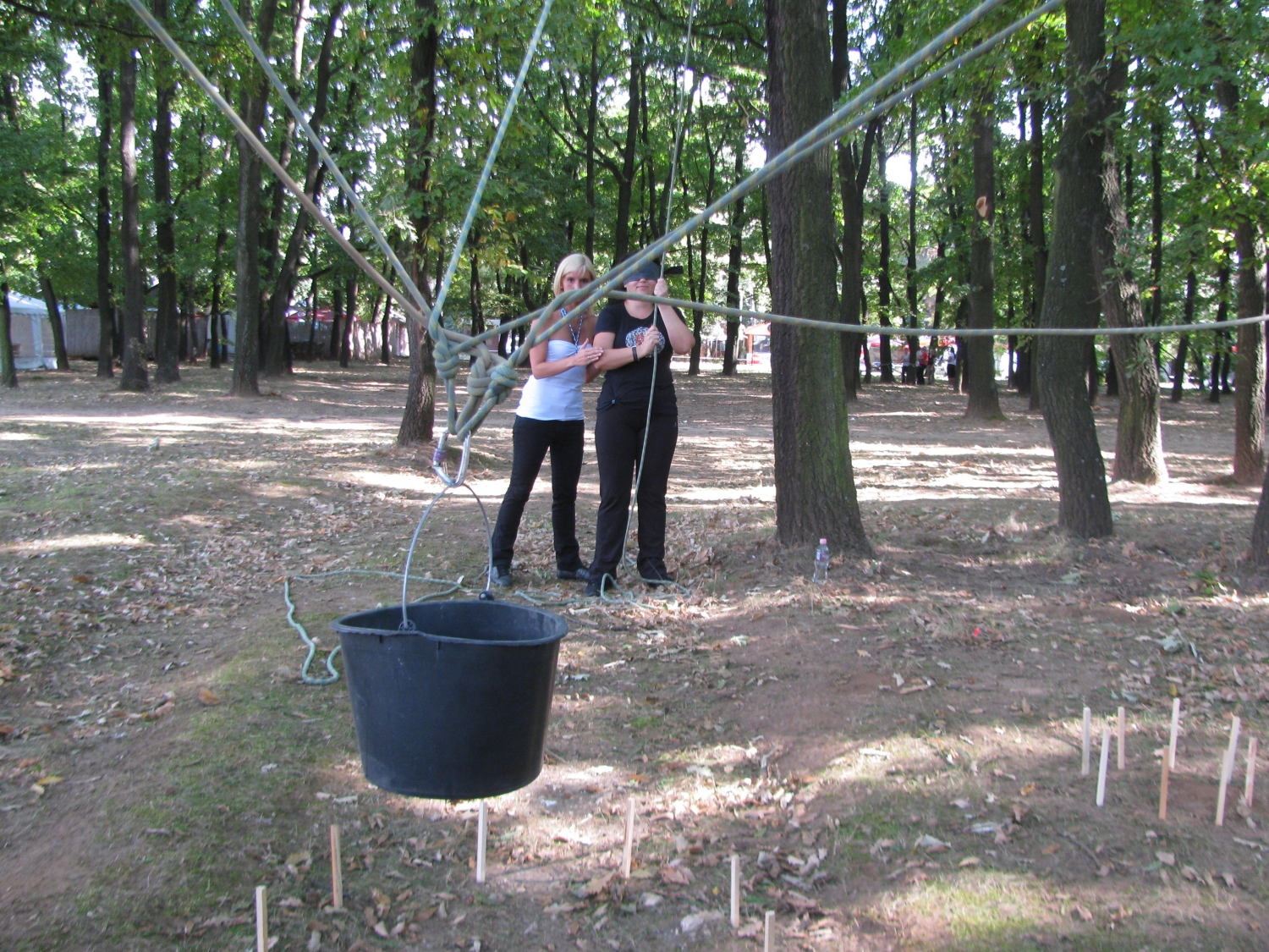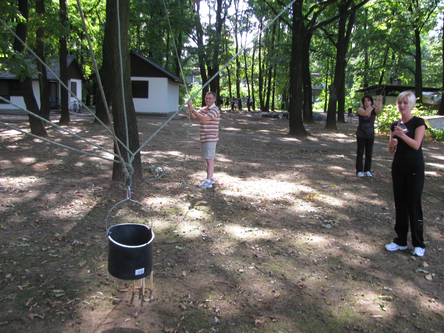 A feladat során a csapatnak kötélrendszer segítségével kell a társukat vagy egy farönköt, ill. egy vízzel teli vödröt behelyezni az előre kijelölt fészekbe anélkül, hogy érintenék annak határait. Az egymást követő helyszínek - ahová a felemelt személyt- vagy tárgyat be kell helyezni egyre nehezebbek. A csapat munkáját a trénerek utasításai fokozatosan nehezítik. Nonverbális kommunikációval és vagy szembekötéssel is nehezülhet a program. Nagyon fontos a jó együttműködés és irányítás a program végrehajtása során.
