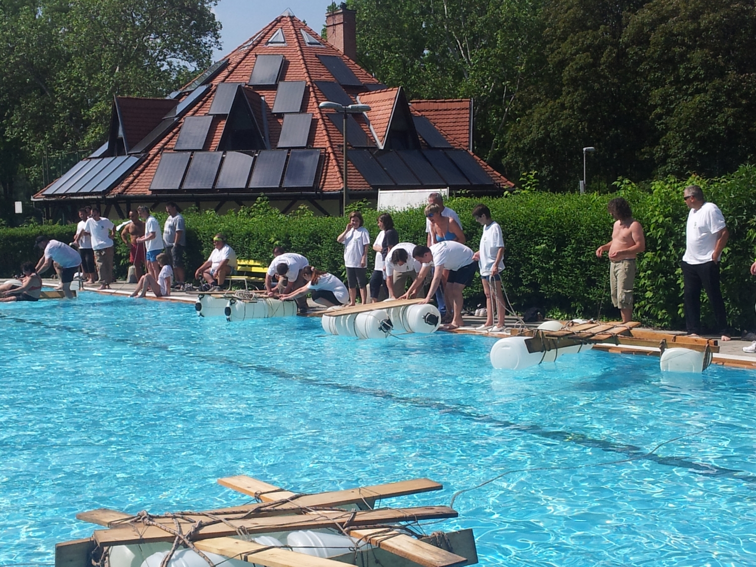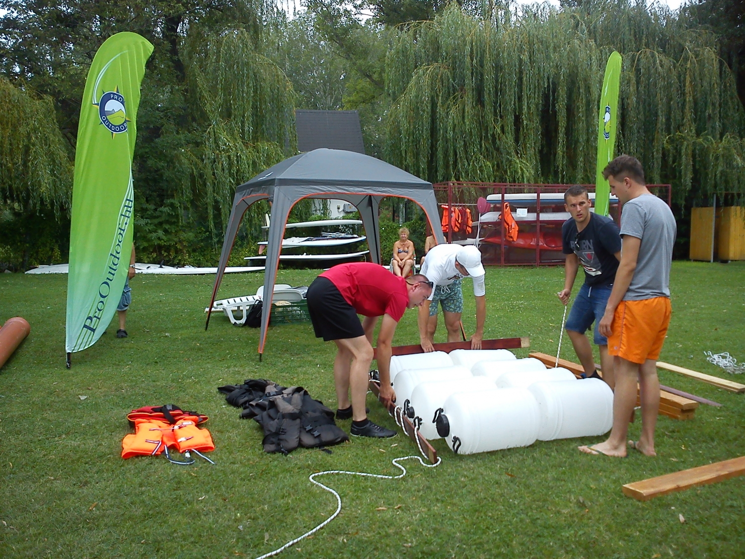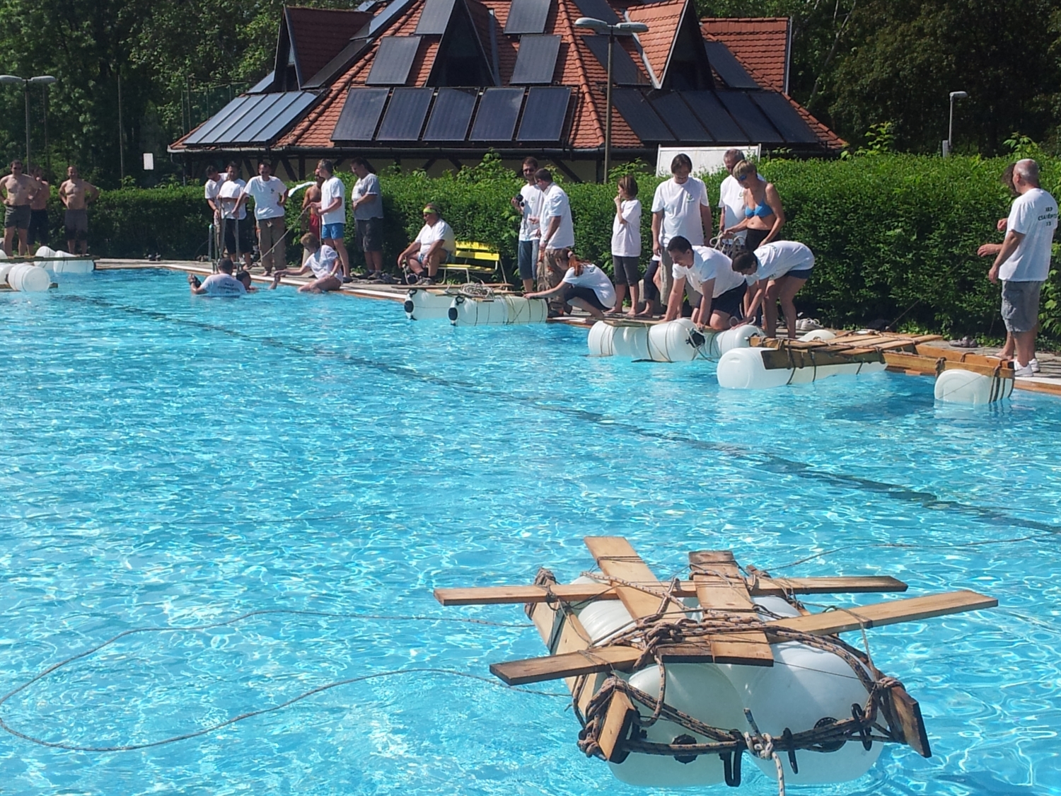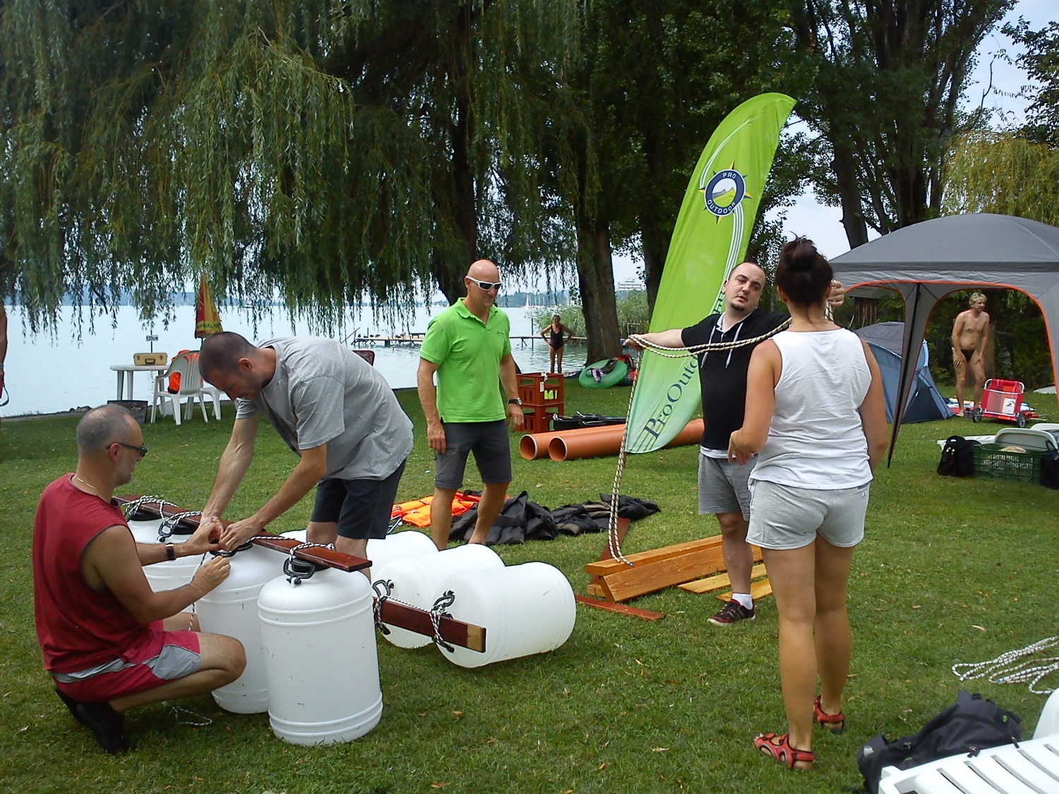 A nyári csapatépítések egyik kiemelkedő vizes programja a tutajépítés, ponton híd építés. Ezt a remek feladatot olyan ügyfelek számára ajánljuk, akik az élményen túl csapatépítést is szeretnének céges programjuk alkalmával. Igényeknek megfelelően bármely kisebb, nagyobb tavon, folyók öbleiben, holtágakban meg tudjuk valósítani ezt a vidám csapatépítő vizes programot, esetleg kombinálva más programelemekkel.