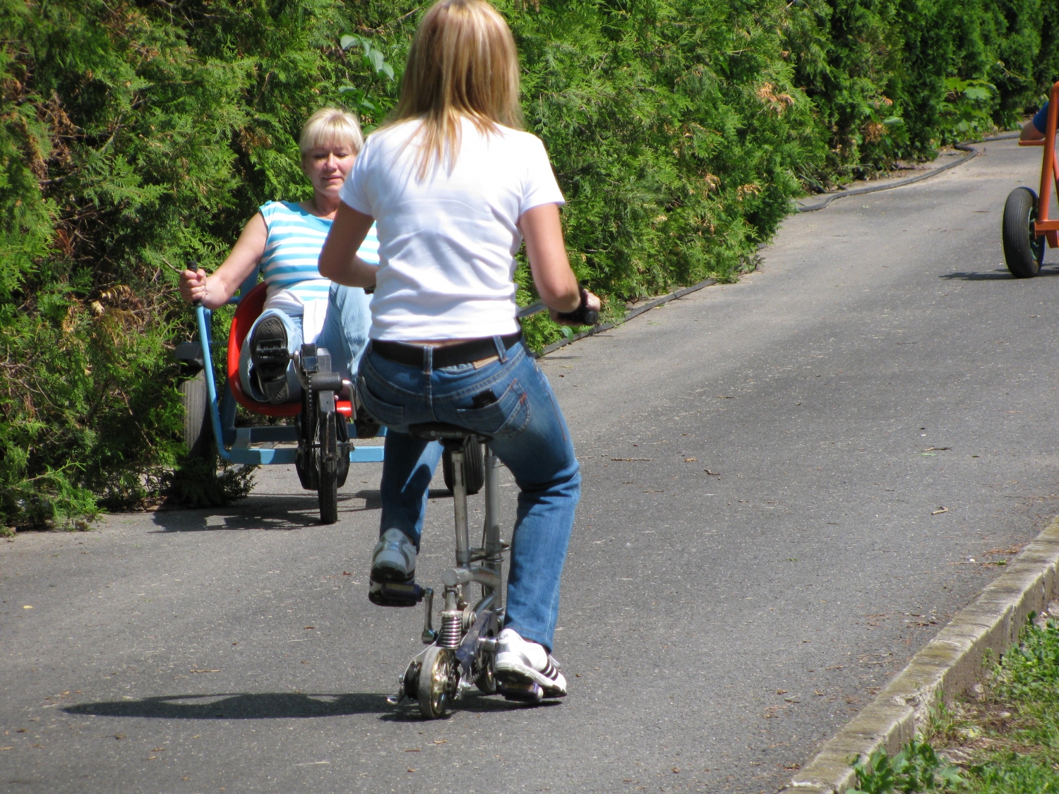 A résztvevőknek lehetőséget adunk, hogy kipróbáljanak egyénileg vagy csapatban a megszokottól eltérő kerékpárokat. A különlegesség abban rejlik, hogy a kerékpárokat „furcsán szereltük össze” ezért azokkal speciális módon lehet közlekedni. Ilyenek például a fordított kormányzású, fordított ülésű, testsúly áthelyezéses, aszimmetrikus tengelyű, tandem, egykerekű, mini kerékpárok. A programunkat épített bójapályán bonyolítjuk animátoraink és „artistáink” segítségével. Igény esetén váltóversenyeket is szervezünk.