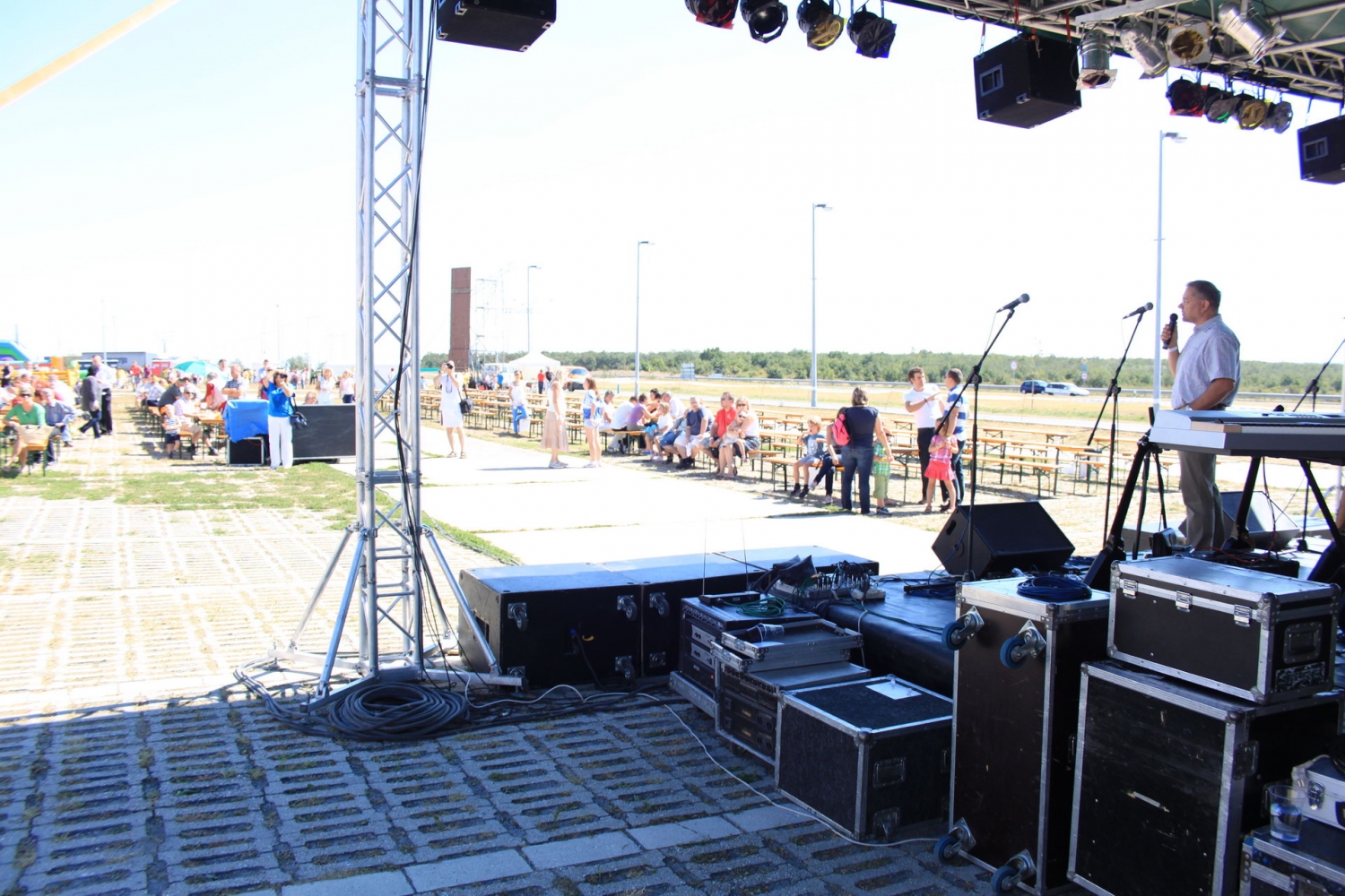Rendezvények elengedhetetlen kelléke a színpad. Az elmúlt évek alatt több típusú színpadfajtával dolgoztunk már, Jelenleg a professzionális Nivtec Flexibel, csúszásmentes, vízálló felületű, 2×1 méteres elemekből összeállítható, kültéren és beltéren egyaránt alkalmazható színpaddal dolgozunk. Lehetőség van 30 cm és 150 cm között, a magasság igény szerinti beállítására, szintezésre.